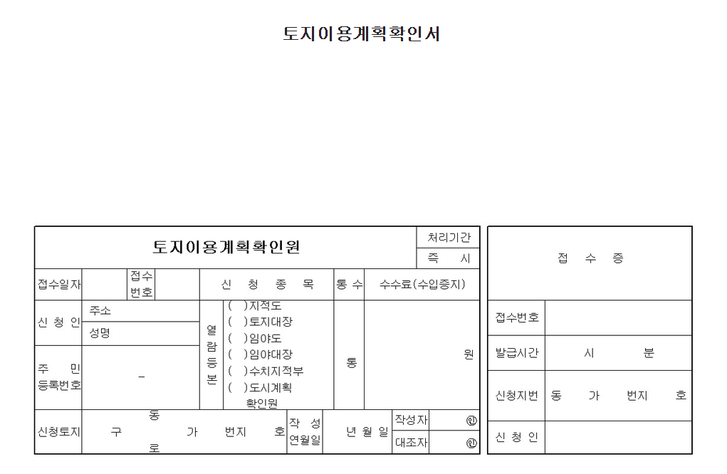 토지이용계획확인서 신청을 위한 오프라인 대체 경로
