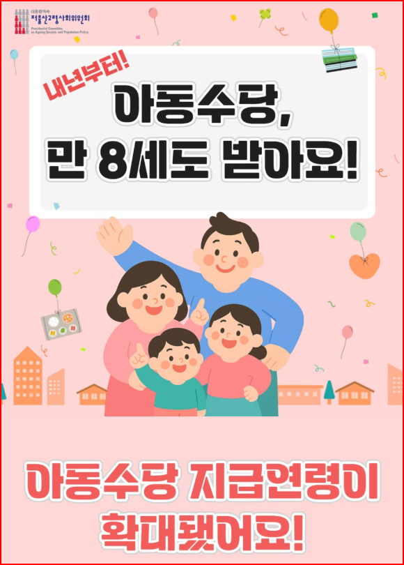 2026년부터 아동수당 지급 연령이 ‘만 8세’까지 확대됩니다!